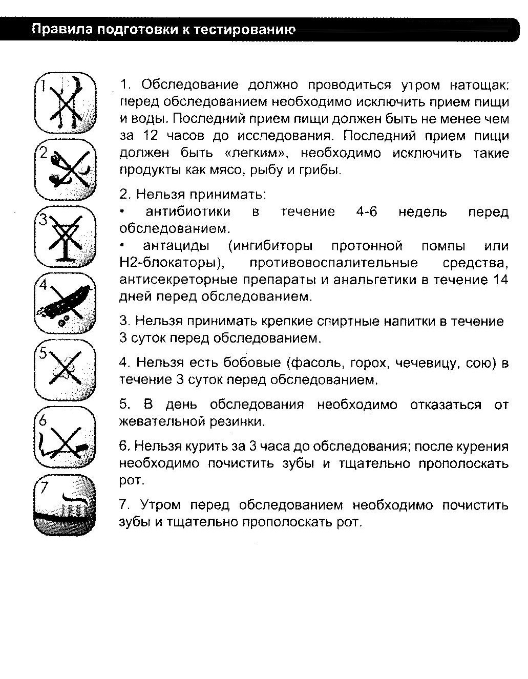 Правила подготовки к тестированию.